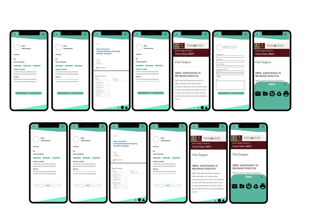 These initial wireframes show the basic outline of the source’s profile from the journalists’ perspective.
